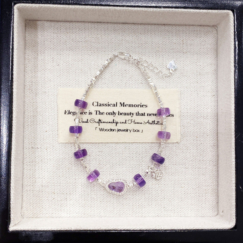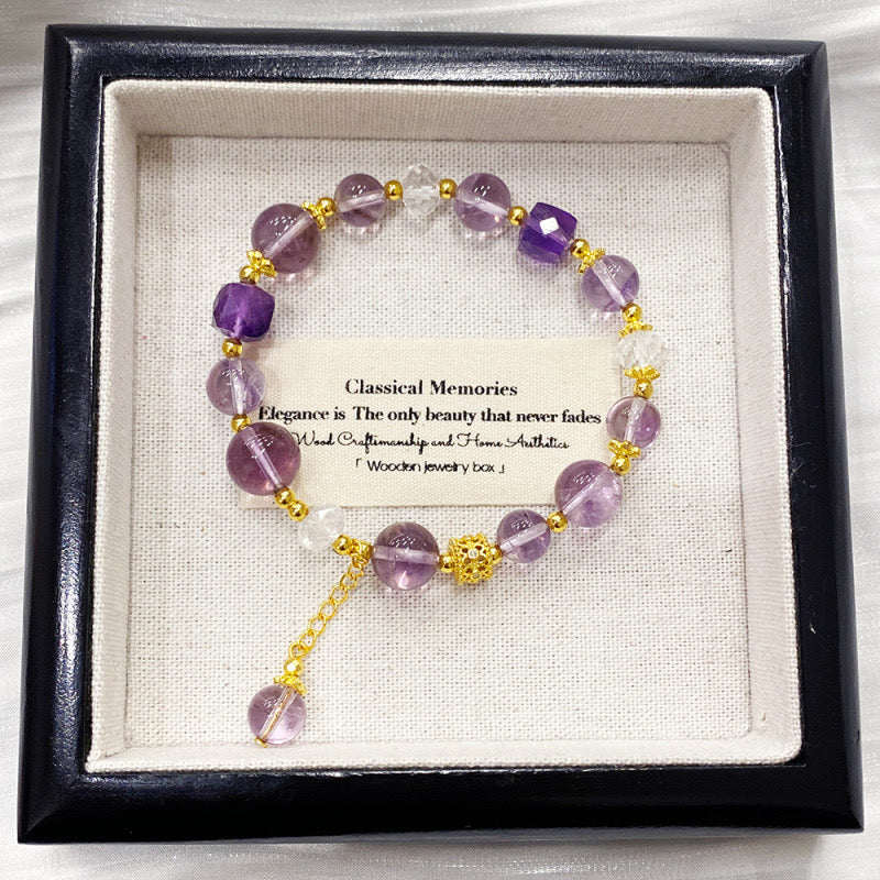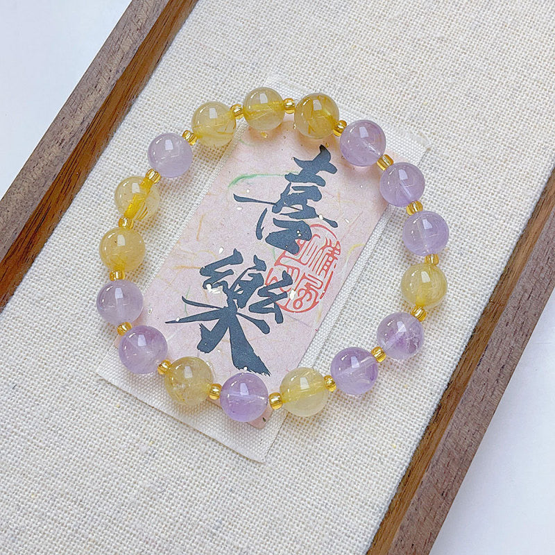 MaisieLin | Natural Amethyst & Citrine Beaded Elastic Bracelet (Beads: 8.3-8.7mm, Premium Gemstone)