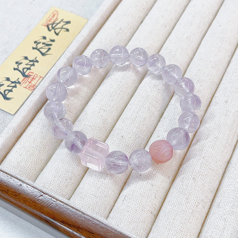 MaisieLin | Alternating Rose Quartz Cube and Amethyst Round Bead Stretch Cord Bracelet