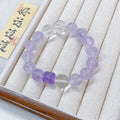 MaisieLin | Alternating Clear Quartz and Amethyst Round Bead Stretch Cord Bracelet (Bead Dia. 12.2-12.6mm)