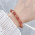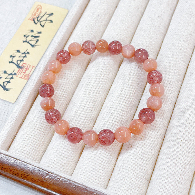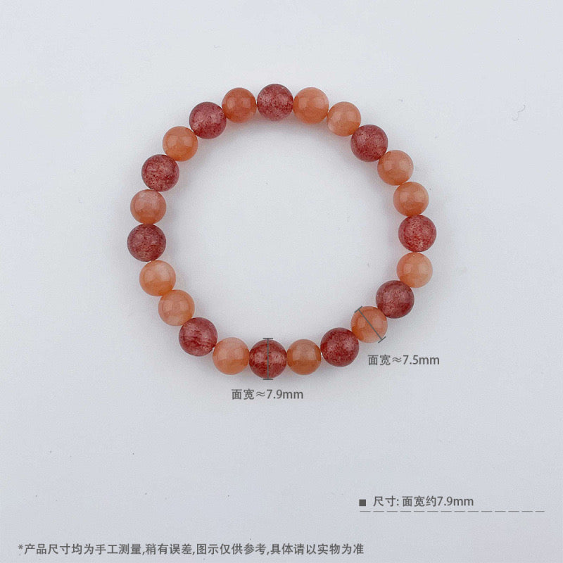 MaisieLin | Alternating Sunstone and Strawberry Quartz Round Bead Stretch Cord Bracelet (Bead Dia. 7.3-7.7mm)