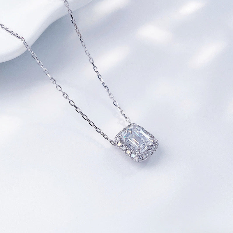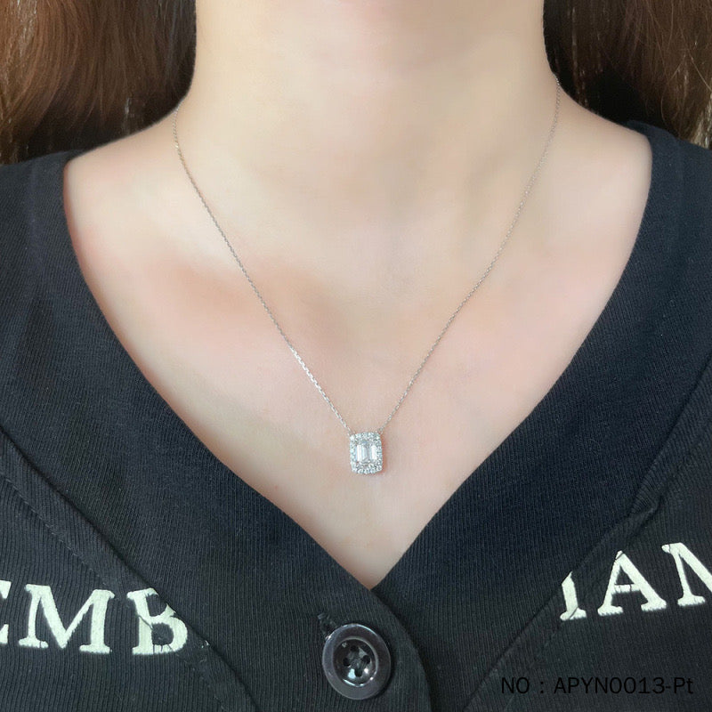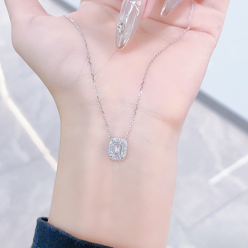 MaisieLin | Dainty Cube Light Luxury Square Diamond Pt950 Platinum Lab-Grown Diamond Necklace Set