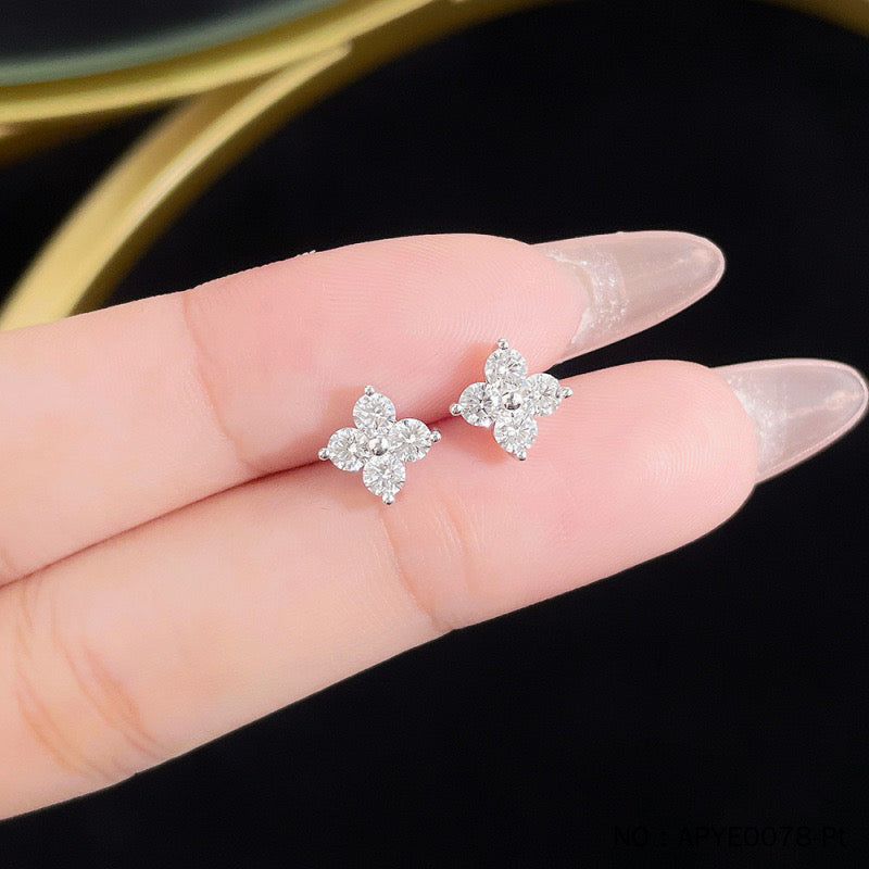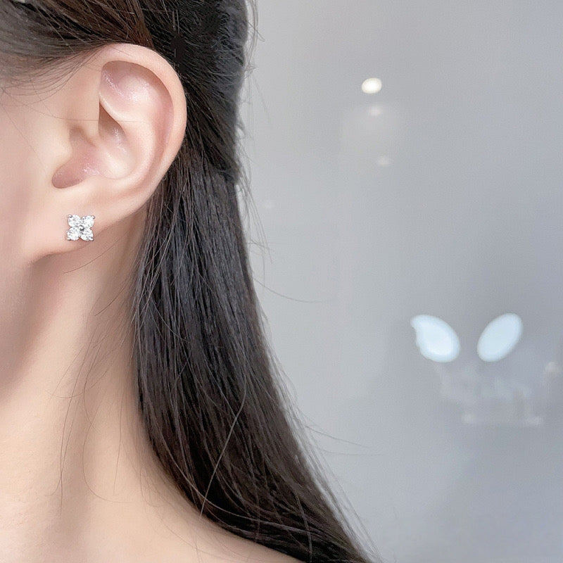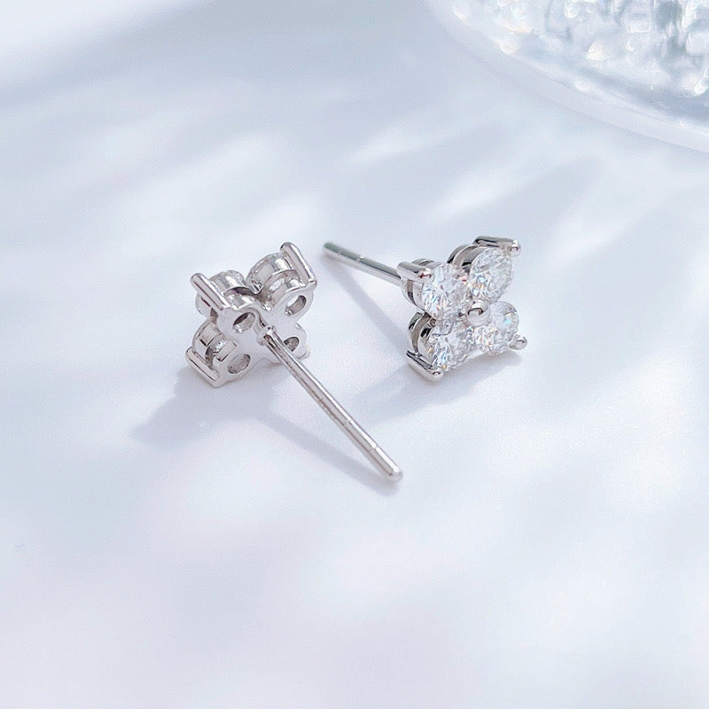 MaisieLin | Lucky Four-Leaf Clover Light Luxury Stylish Pt950 Platinum Lab-Grown Diamond Earrings (Stud Style)