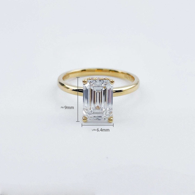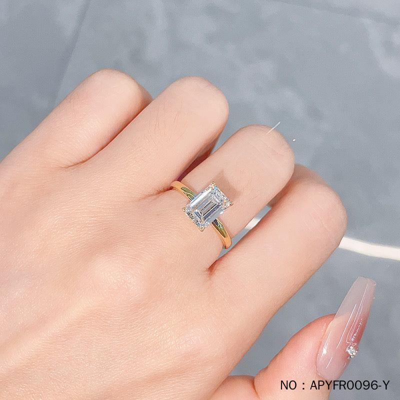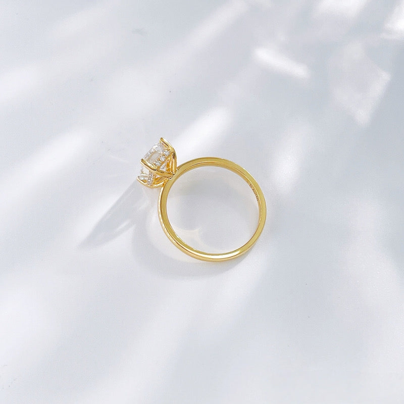 MaisieLin | Minimalist High-End Emerald-Cut Four-Claw 18K Yellow Gold Lab-Grown Diamond Ring for Women