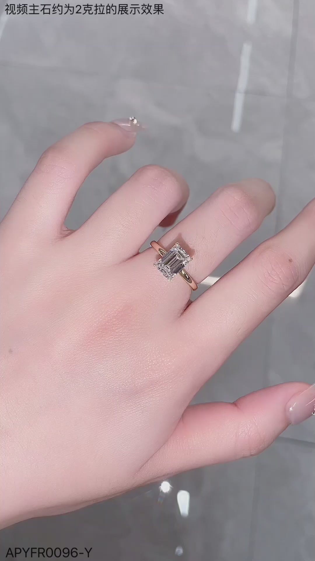 Minimalist High-End Emerald-Cut Four-Claw 18K Yellow Gold Lab-Grown Diamond Ring for Women