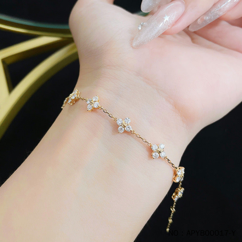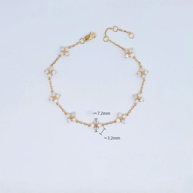 MaisieLin | Minimalist, Stylish & Classic Light Luxury Lucky Four-Leaf Clover 18K Yellow Gold Lab-Grown Diamond Bracelet