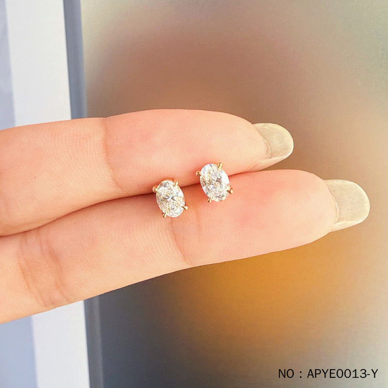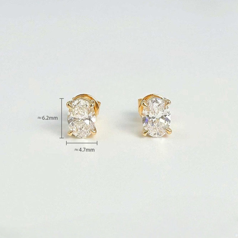 MaisieLin | Minimalist & Stylish Oval Four-Claw 18K Yellow Gold Lab-Grown Diamond Stud Earrings