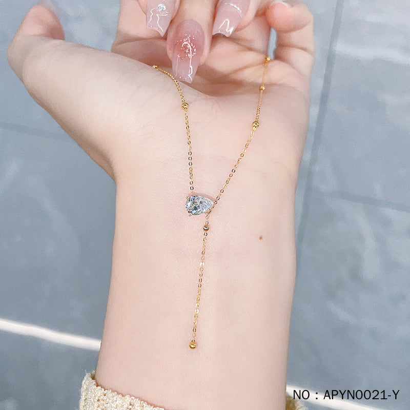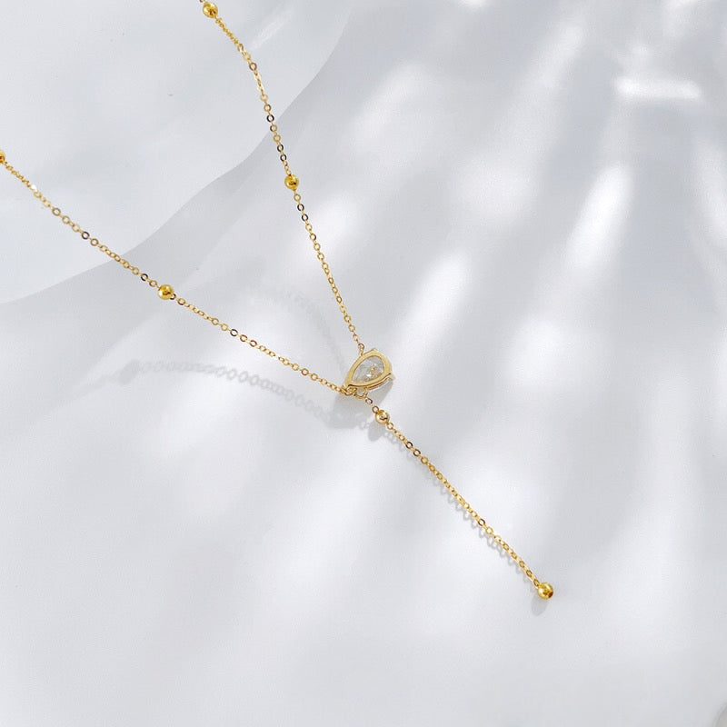MaisieLin | Starry Galaxy Dazzling Premium Tassel Pear-Shaped 18K Yellow Gold Teardrop Lab-Grown Solitaire Diamond Necklace Set