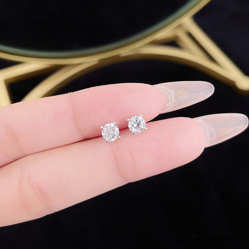 MaisieLin | Stylish Four-Claw Pt950 Platinum Lab-Grown Diamond Earrings (Stud Style)