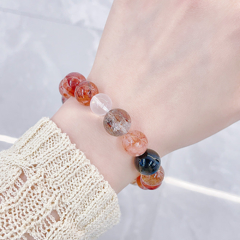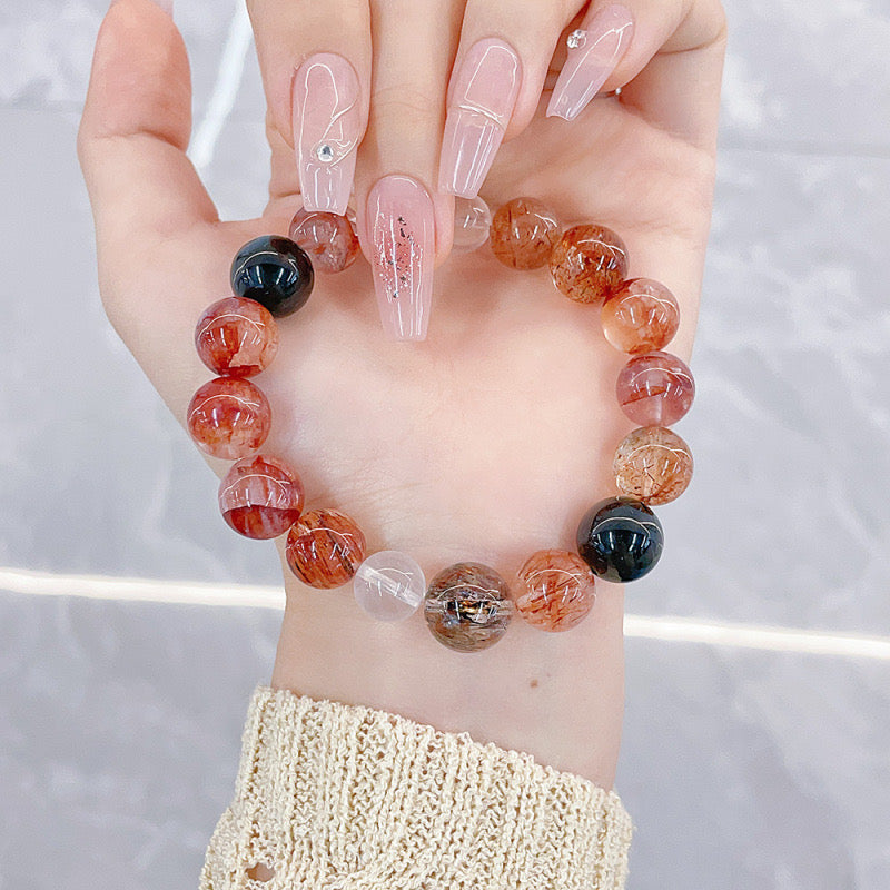 MaisieLin | Super Seven, Hematoid Quartz & Phantom Quartz Round Bead Mixed Gem Stretch Bracelet