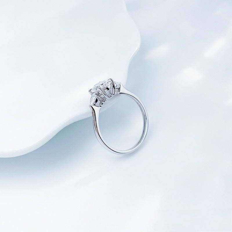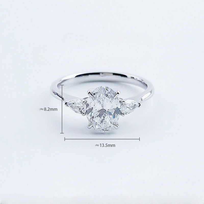 MaisieLin | Three-Stone Light Luxury & Stylish Oval Straight-Shank Four-Claw Pt950 Platinum Lab-Grown Diamond Ring for Women